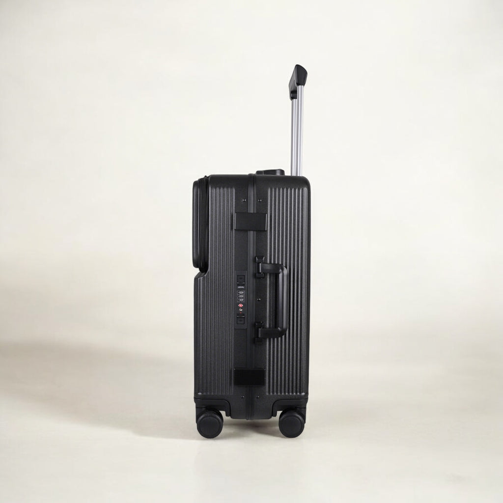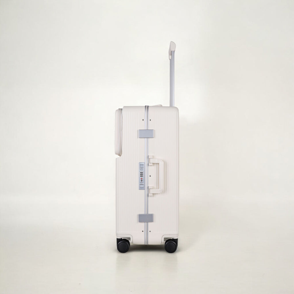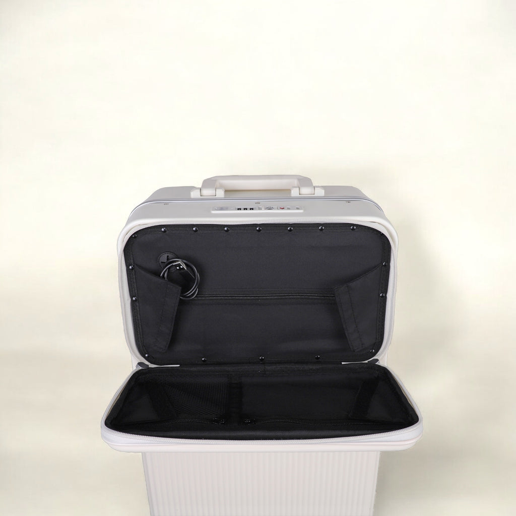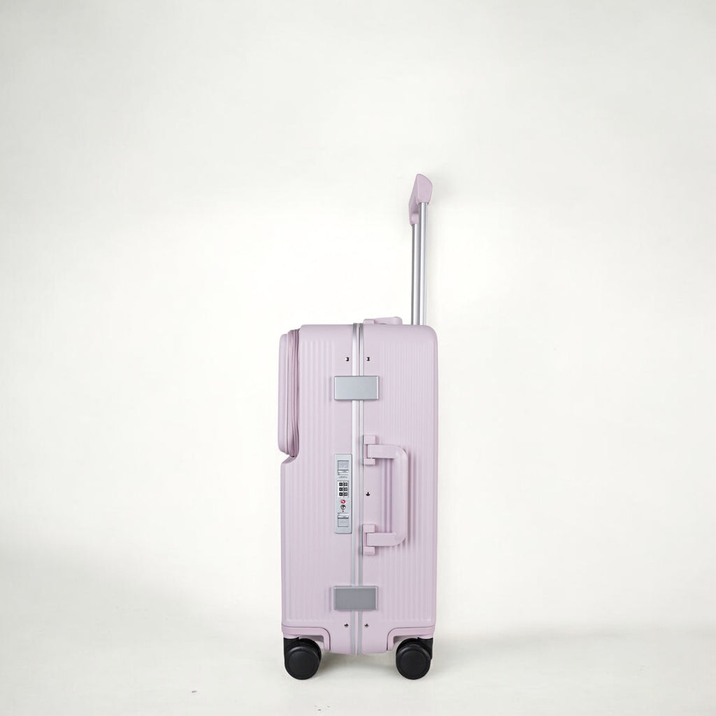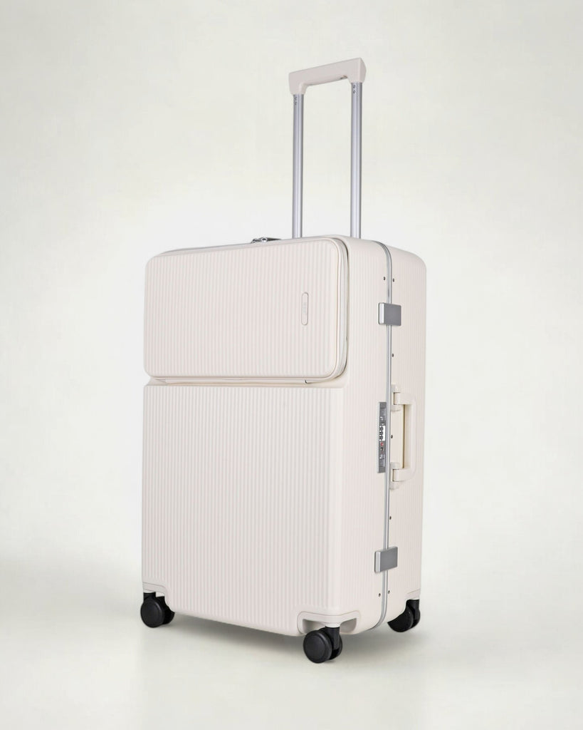 JLY Rövaan is a sophisticated, style-forward collection crafted for the modern traveler seeking intuitive design and elevated convenience. Blending contemporary aesthetics with cutting edge functionality, each case is equipped with thoughtful essentials including a built-in USB charging port, an integrated cup holder, and ultra smooth, ultra quiet precision engineered ball bearing spinner wheels for effortless maneuverability. A dedicated wet zone pocket keeps damp items separate from dry. Constructed from premium Costrovo™ 100% polycarbonate and lined with soft-touch peach skin fabric, the Rövaan delivers both durability and tactile luxury. Security is seamlessly integrated with a slide-button TSA clasp lock and a reinforced aluminum frame, offering peace of mind on every journey. Designed for a seamless packing experience and effortless mobility, Rövaan is more than luggage. It is travel, refined.