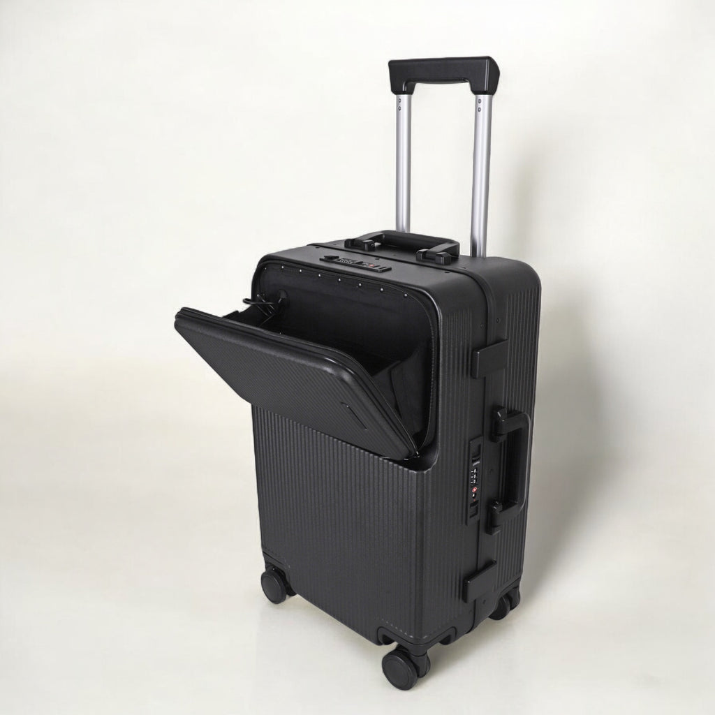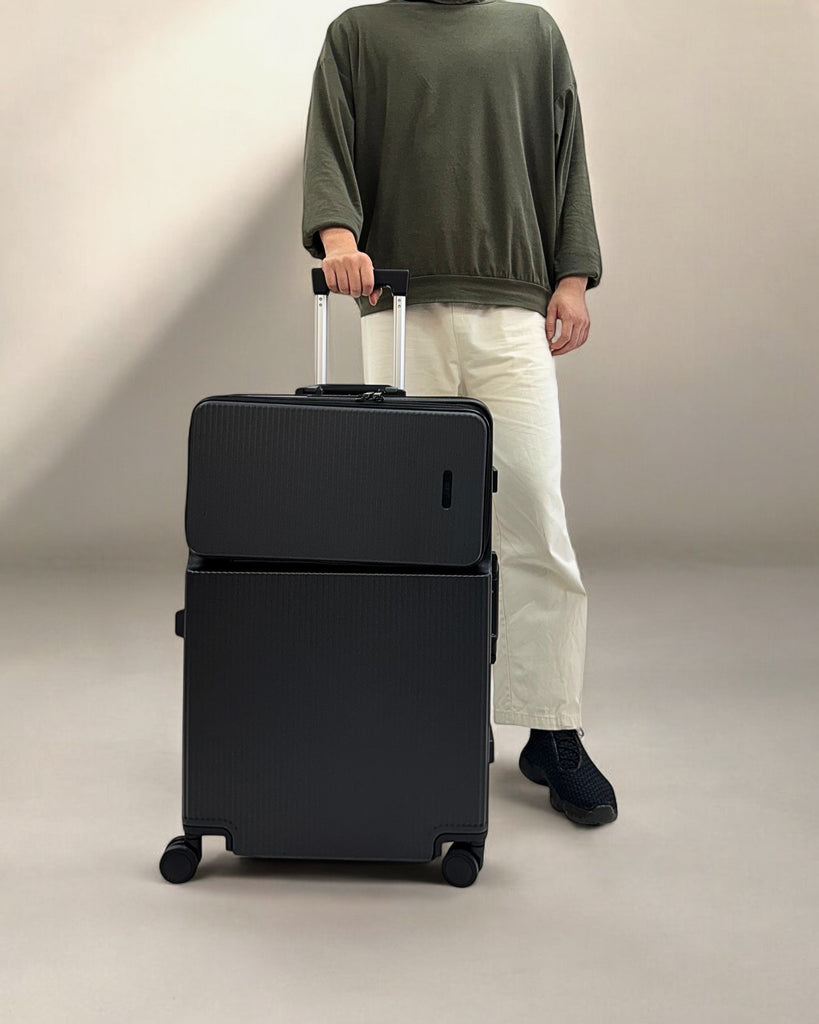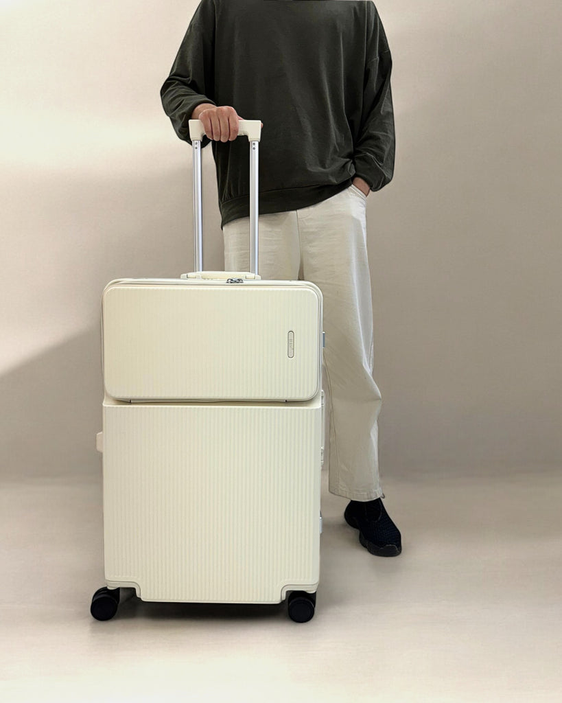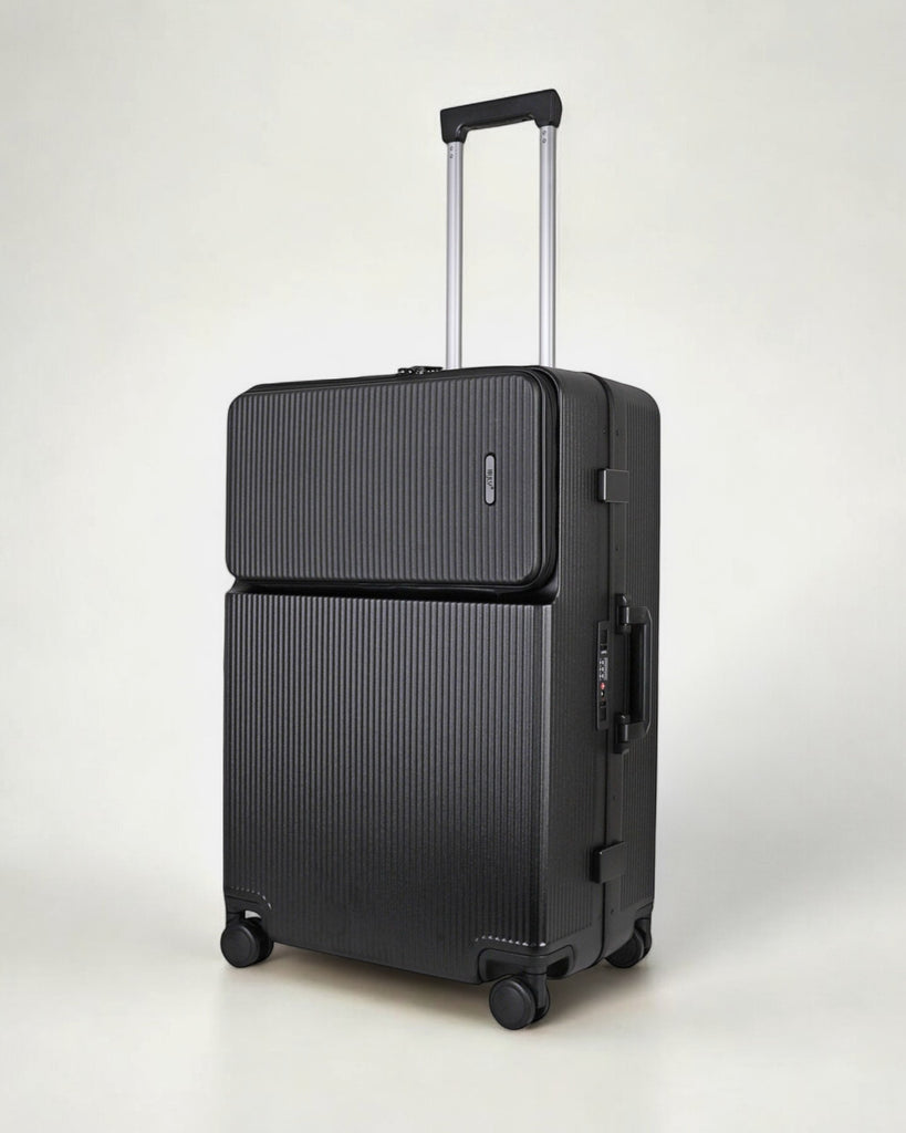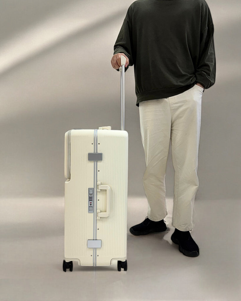 JLY Rövaan is a sophisticated, style-forward collection crafted for the modern traveler seeking intuitive design and elevated convenience. Blending contemporary aesthetics with cutting edge functionality, each case is equipped with thoughtful essentials including a built-in USB charging port, an integrated cup holder, and ultra smooth, ultra quiet precision engineered ball bearing spinner wheels for effortless maneuverability. A dedicated wet zone pocket keeps damp items separate from dry. Constructed from premium Costrovo™ 100% polycarbonate and lined with soft-touch peach skin fabric, the Rövaan delivers both durability and tactile luxury. Security is seamlessly integrated with a slide-button TSA clasp lock and a reinforced aluminum frame, offering peace of mind on every journey. Designed for a seamless packing experience and effortless mobility, Rövaan is more than luggage. It is travel, refined.