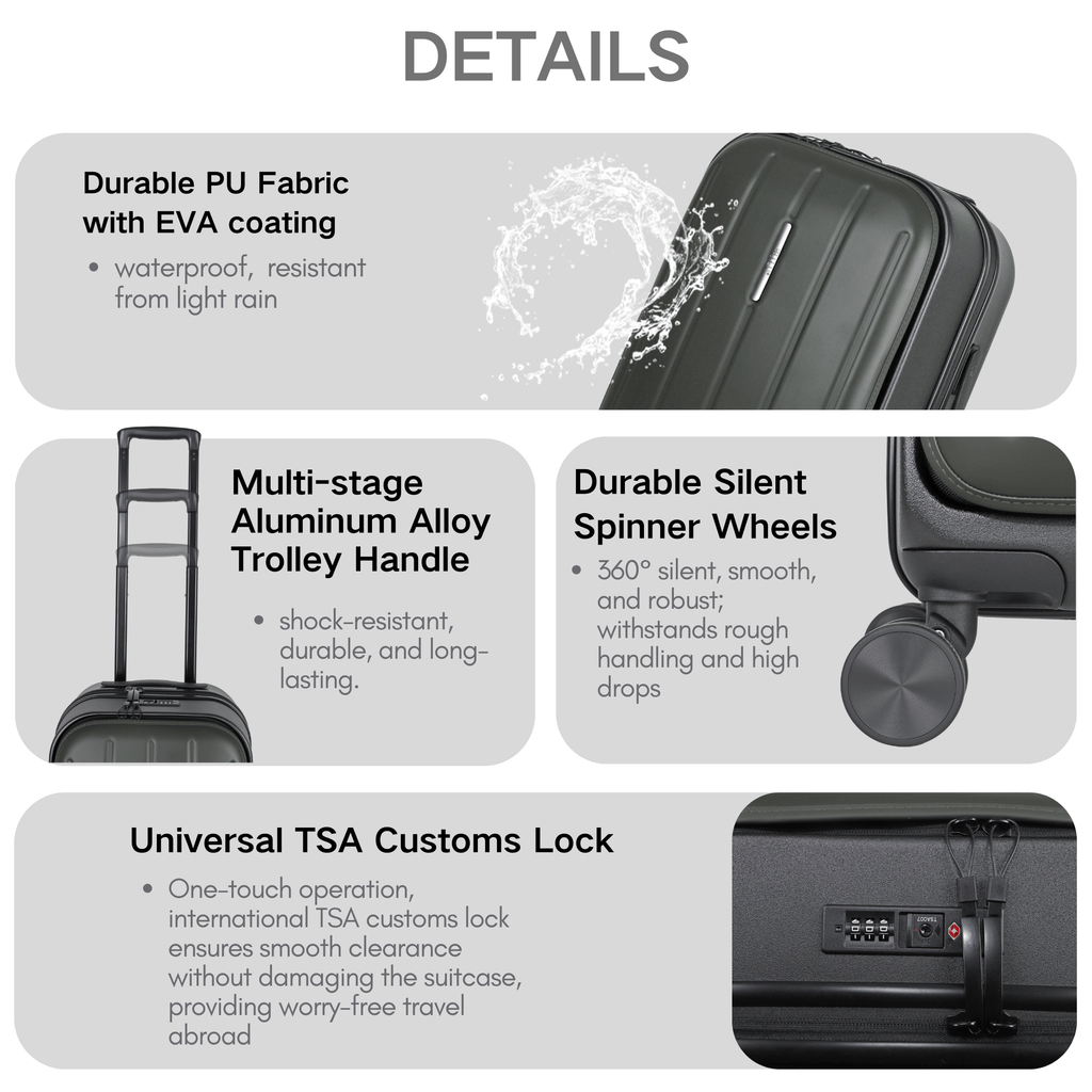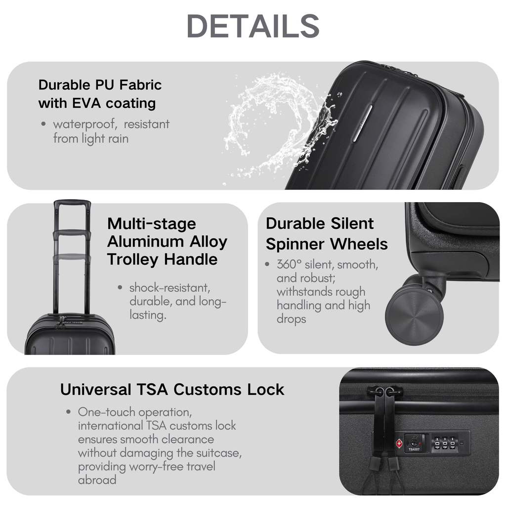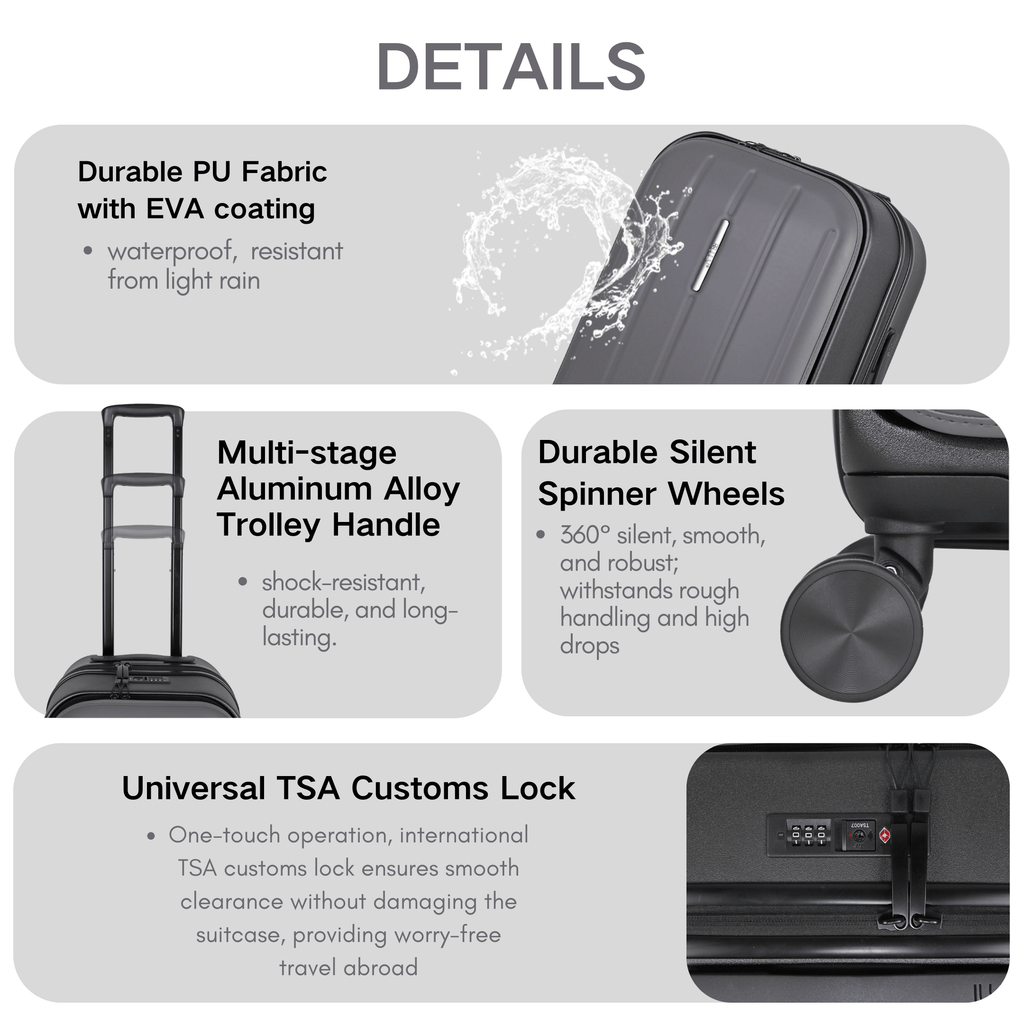 · Robust Hard Shell: Crafted from premium polycarbonate, ensuring secure and protected belongings throughout your journey.