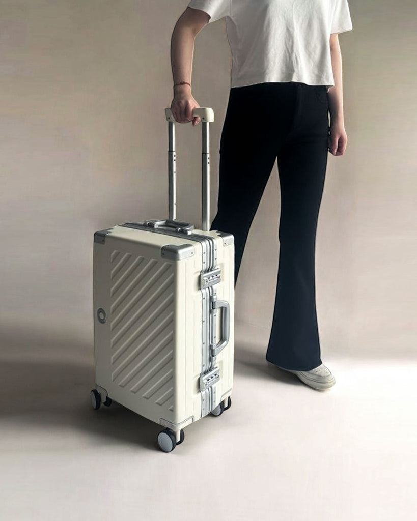 The TSA-approved clasp lock offers a satisfyingly effortless click-to-lock mechanism. Its zipperless Aluminum frame provides a secure alternative to traditional zippers, while its tight rubber seal protects belongings from light rain and moisture—keeping you ready for any weather.