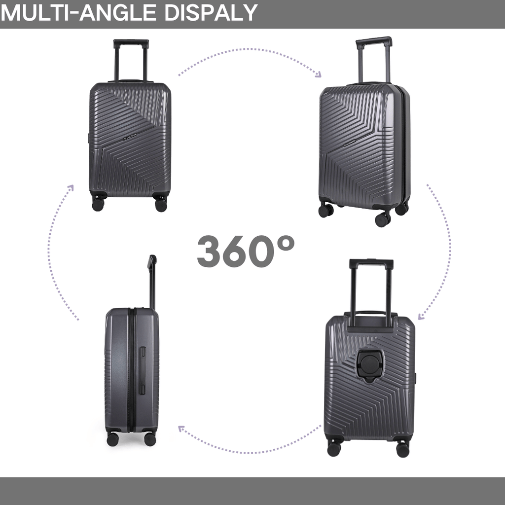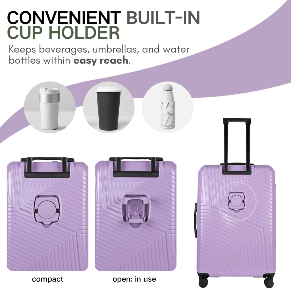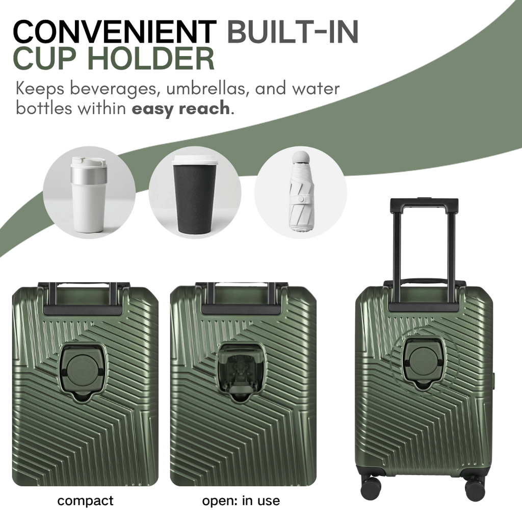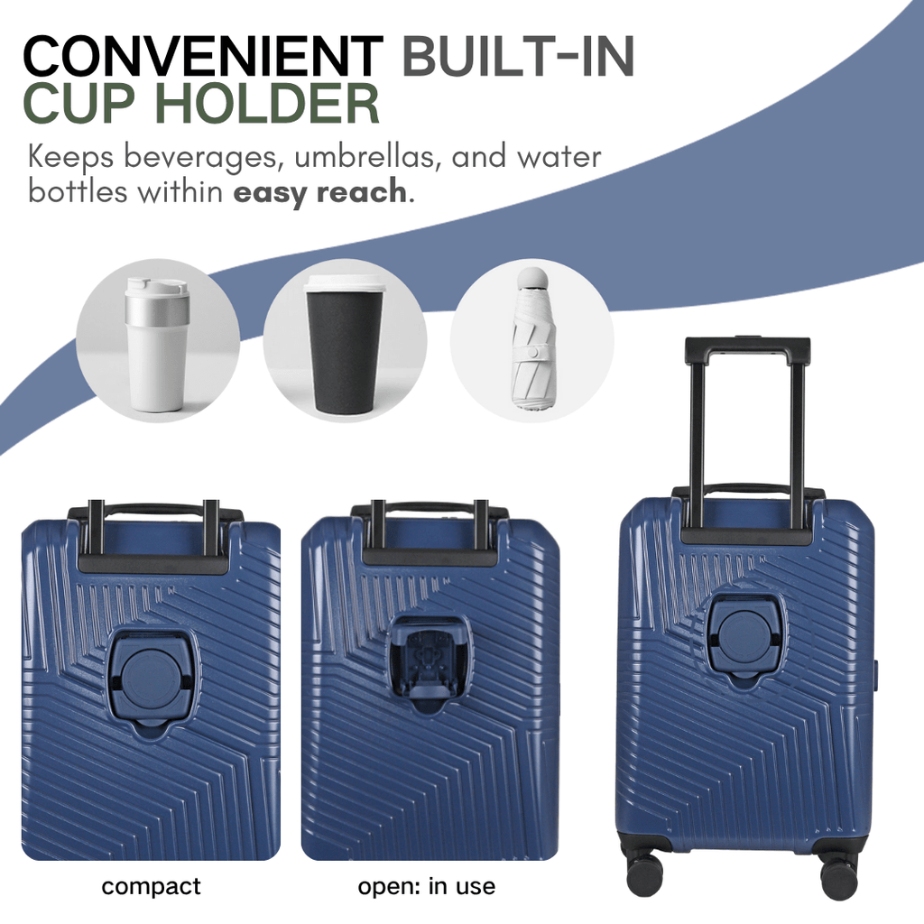 This suitcase is crafted from a durable blend of polycarbonate and ABS, the hard shell is finished with elegant stitched seams along the zipper edges, adding a tailored touch that speaks of refined style. Featuring a built-in cupholder, TSA lock, and steady double spinner wheels, it delivers outstanding travel convenience, smooth motion, and reliable security.