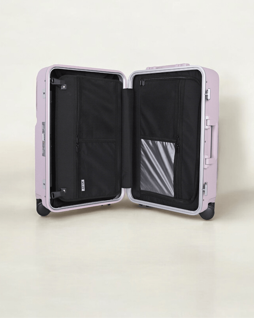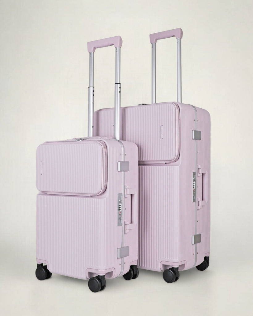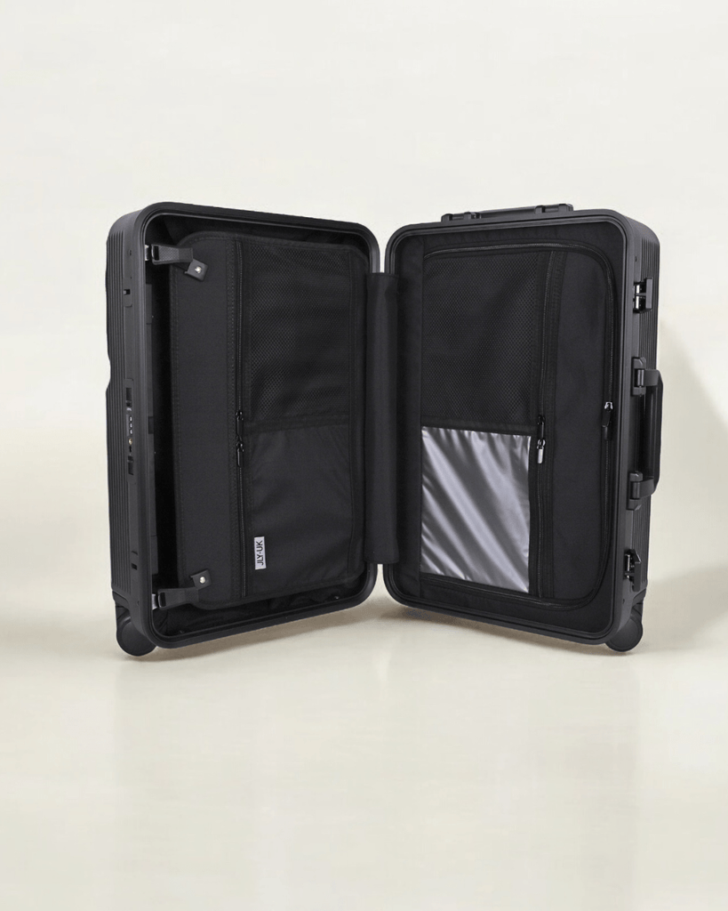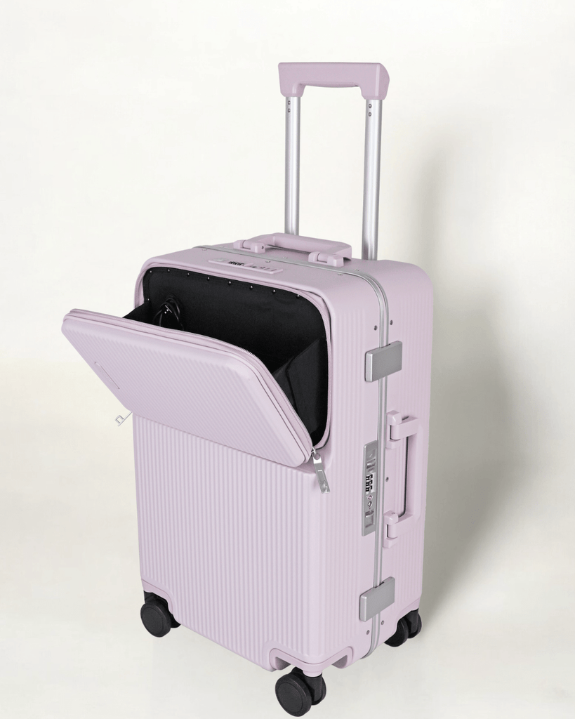 JLY Rövaan is a sophisticated, style-forward collection crafted for the modern traveler seeking intuitive design and elevated convenience. Blending contemporary aesthetics with cutting edge functionality, each case is equipped with thoughtful essentials including a built-in USB charging port, an integrated cup holder, and ultra smooth, ultra quiet precision engineered ball bearing spinner wheels for effortless maneuverability. A dedicated wet zone pocket keeps damp items separate from dry. Constructed from premium Costrovo™ 100% polycarbonate and lined with soft-touch peach skin fabric, the Rövaan delivers both durability and tactile luxury. Security is seamlessly integrated with a slide-button TSA clasp lock and a reinforced aluminum frame, offering peace of mind on every journey. Designed for a seamless packing experience and effortless mobility, Rövaan is more than luggage. It is travel, refined.
