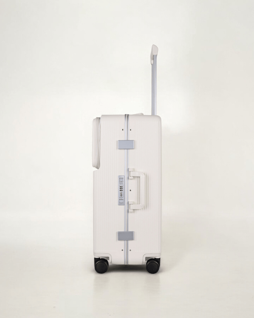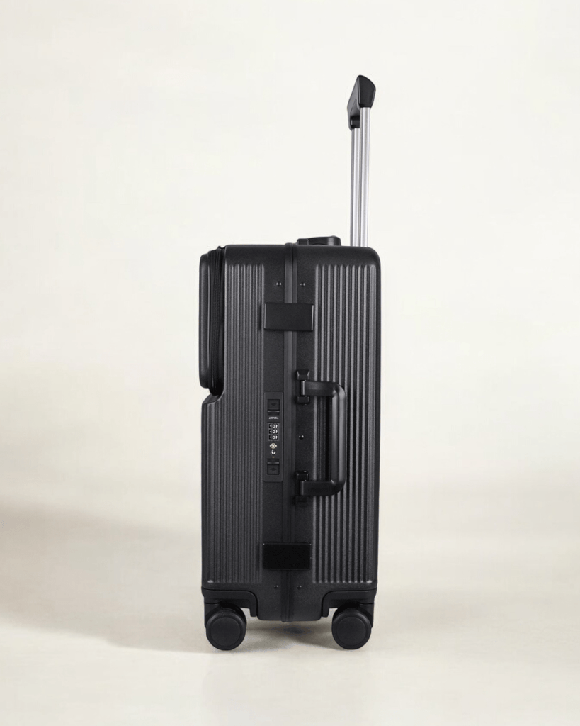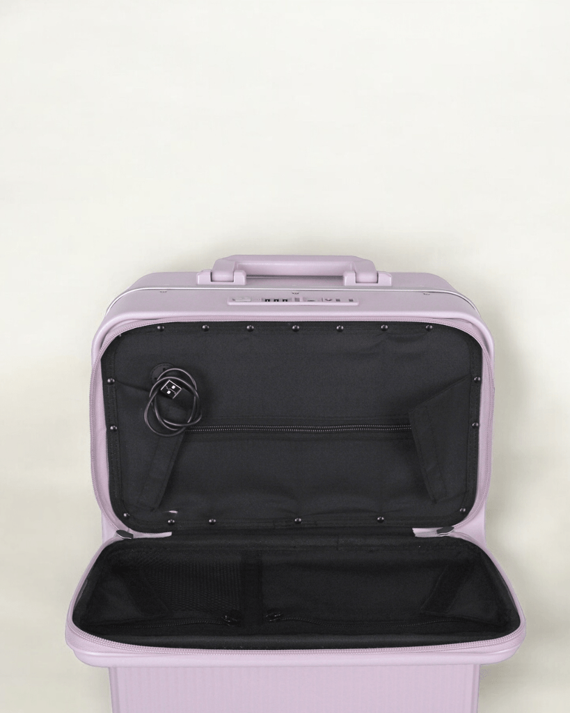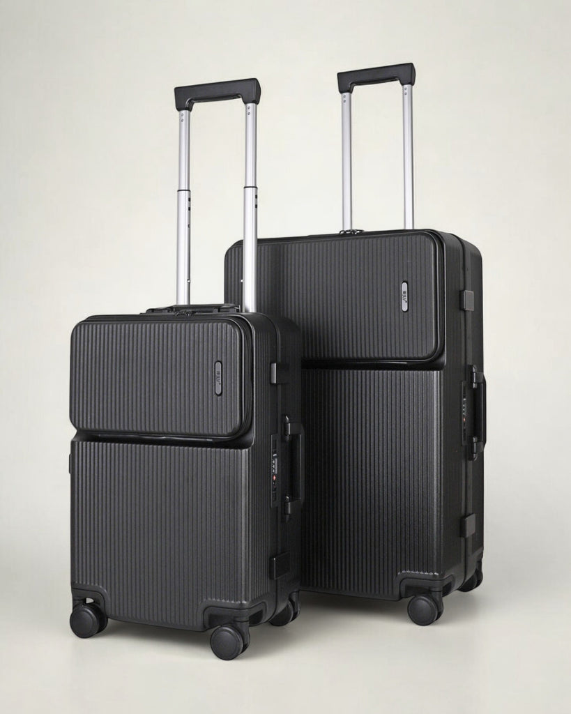 JLY Rövaan is a sophisticated, style-forward collection crafted for the modern traveler seeking intuitive design and elevated convenience. Blending contemporary aesthetics with cutting edge functionality, each case is equipped with thoughtful essentials including a built-in USB charging port, an integrated cup holder, and ultra smooth, ultra quiet precision engineered ball bearing spinner wheels for effortless maneuverability. A dedicated wet zone pocket keeps damp items separate from dry. Constructed from premium Costrovo™ 100% polycarbonate and lined with soft-touch peach skin fabric, the Rövaan delivers both durability and tactile luxury. Security is seamlessly integrated with a slide-button TSA clasp lock and a reinforced aluminum frame, offering peace of mind on every journey. Designed for a seamless packing experience and effortless mobility, Rövaan is more than luggage. It is travel, refined.