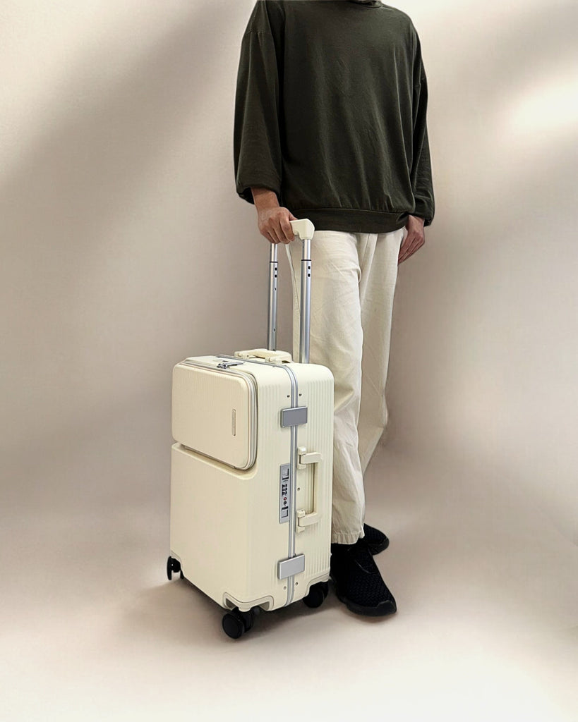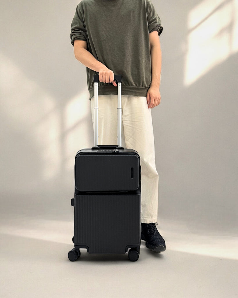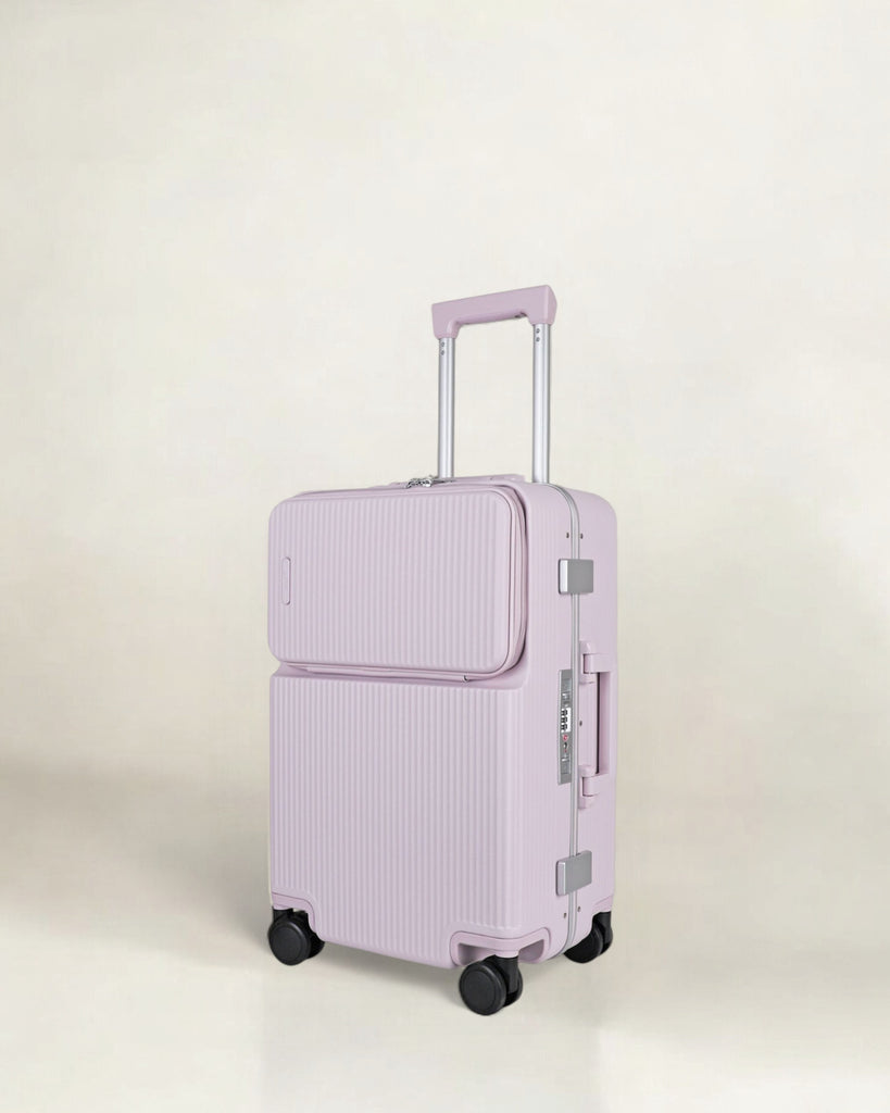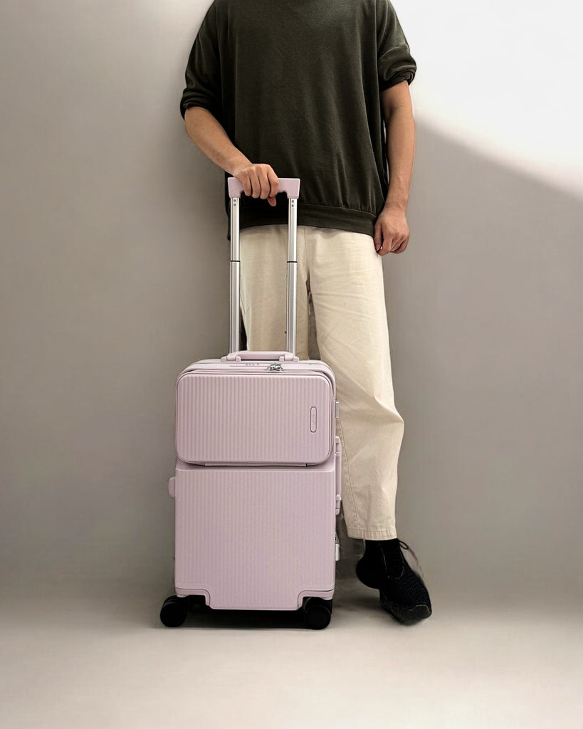 JLY Rövaan is a sophisticated, style-forward collection crafted for the modern traveler seeking intuitive design and elevated convenience. Blending contemporary aesthetics with cutting edge functionality, each case is equipped with thoughtful essentials including a built-in USB charging port, an integrated cup holder, and ultra smooth, ultra quiet precision engineered ball bearing spinner wheels for effortless maneuverability. A dedicated wet zone pocket keeps damp items separate from dry. Constructed from premium Costrovo™ 100% polycarbonate and lined with soft-touch peach skin fabric, the Rövaan delivers both durability and tactile luxury. Security is seamlessly integrated with a slide-button TSA clasp lock and a reinforced aluminum frame, offering peace of mind on every journey. Designed for a seamless packing experience and effortless mobility, Rövaan is more than luggage. It is travel, refined.
