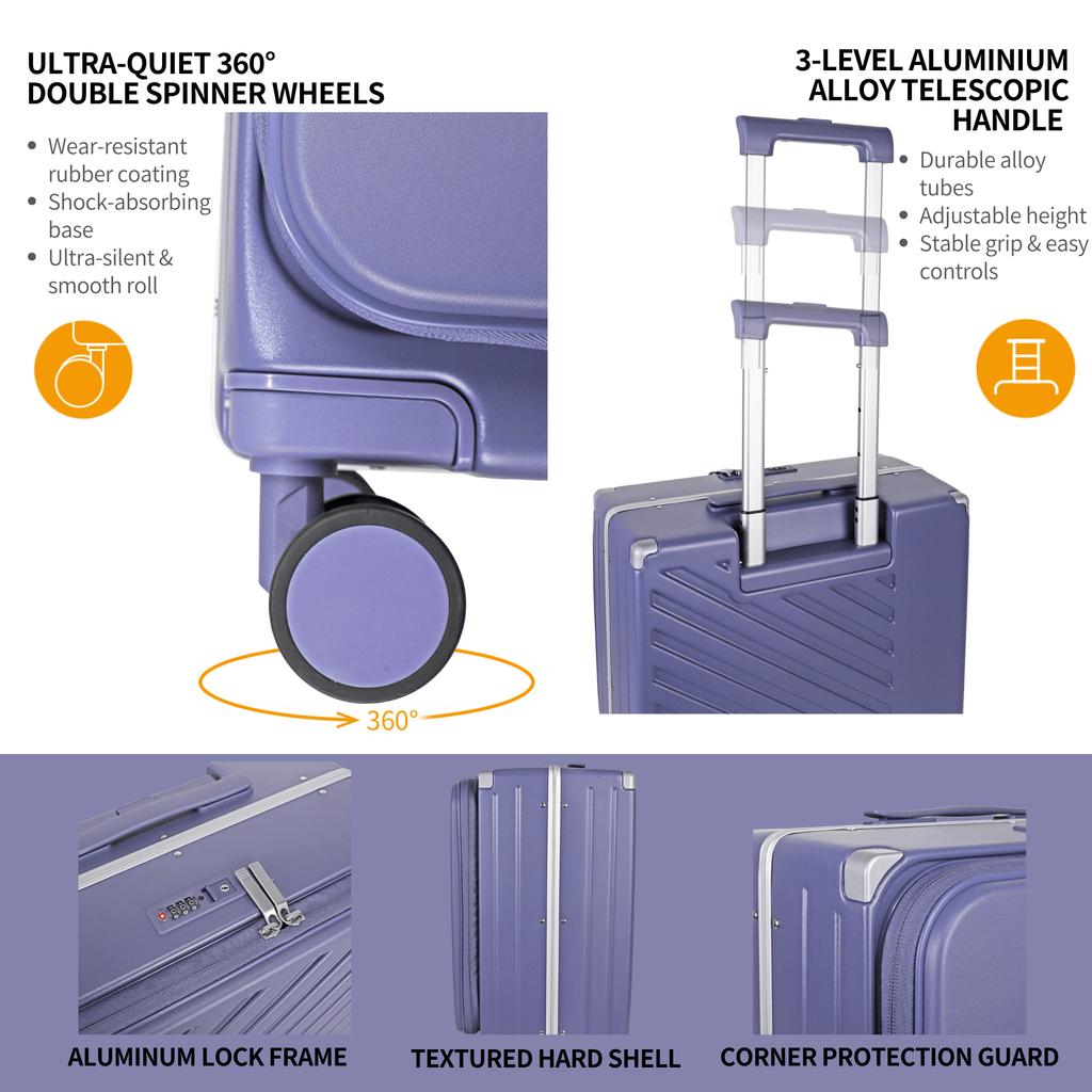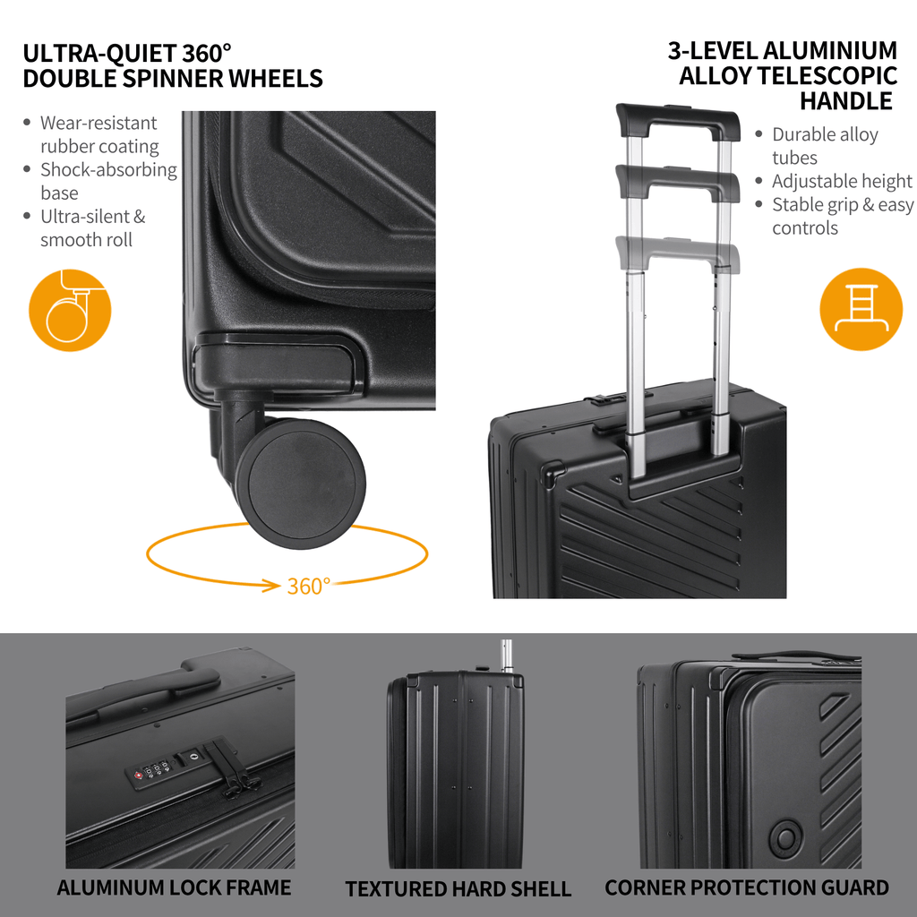 • Smooth Maneuverability: 360° double-spinner wheels & durable aluminum retractable handle